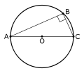 Thales' theorem states that if AC is a diameter, then the angle at B is a right angle.