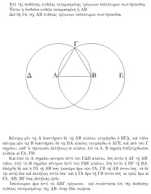 Near the beginning of the first book of the Elements, Euclid gives five postulates (axioms) for plane geometry, stated in terms of constructions (as translated by Thomas Heath):[5]