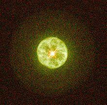 Towards the end of the 20th century, technological improvements helped to further the study of planetary nebulae.[20] Space telescopes allowed astronomers to study light wavelengths outside those that the Earth's atmosphere transmits. Infrared and ultraviolet studies of planetary nebulae allowed much more accurate determinations of nebular temperatures, densities and elemental abundances.[21][22] Charge-coupled device technology allowed much fainter spectral lines to be measured accurately than had previously been possible. The Hubble Space Telescope also showed that while many nebulae appear to have simple and regular structures when observed from the ground, the very high optical resolution achievable by telescopes above the Earth's atmosphere reveals extremely complex structures.[23][24]