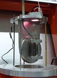 A duoplasmatron is a type of glow discharge ion source that consists of a cathode (hot cathode or cold cathode) that produces a plasma that is used to ionize a gas.[1][22] Duoplasmatrons can produce positive or negative ions.[23] Duoplasmatrons are used for secondary ion mass spectrometry.,[24][25] ion beam etching, and high-energy physics.[26]