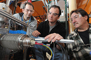 An electron beam ion source (EBIS) is used in atomic physics to produce highly charged ions by bombarding atoms with a powerful electron beam.[2][3] Its principle of operation is shared by the electron beam ion trap.