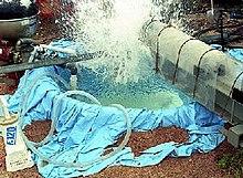 Using explosives as seismic sources has been in practice for decades because of the reliability and energy efficiency they provide.[7] Such sources are most commonly used on land and swampy environments because of high thickness in sediments.[6] Typical charge sizes used in the field for reflection surveys are 0.25 kg to 100 kg for single hole sources, 0.25 kg to 250 kg or more for multiple hole sources, and may reach 2500 kg or more for refraction surveys.[4]