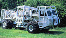 For instance, hexanitrostilbene was the main explosive fill in the thumper mortar round canisters used as part of the Apollo Lunar Active Seismic Experiments.[9] Generally, the explosive charges are placed between 6 and 76 metres (20 and 250 ft) below ground, in a hole that is drilled with dedicated drilling equipment for this purpose. This type of seismic drilling is often referred to as "Shot Hole Drilling". A common drill rig used for "Shot Hole Drilling" is the ARDCO C-1000 drill mounted on an ARDCO K 4X4 buggy. These drill rigs often use water or air to assist the drilling.