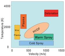 - ^ a b c d e f g h i Kuroda, Seiji; Kawakita, Jin; Watanabe, Makoto; Katanoda, Hiroshi (2008). "Warm spraying—a novel coating process based on high-velocity impact of solid particles". Sci. Technol. Adv. Mater. 9 (3): 033002. doi:10.1088/1468-6996/9/3/033002. PMC 5099653. PMID 27877996.