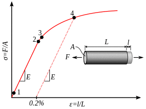 For many ductile metals, tensile loading applied to a sample will cause it to behave in an elastic manner. Each increment of load is accompanied by a proportional increment in extension. When the load is removed, the piece returns to its original size. However, once the load exceeds a threshold – the yield strength – the extension increases more rapidly than in the elastic region; now when the load is removed, some degree of extension will remain.