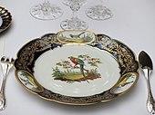 Plate of the collection of the birds (1916) of the manufacture de Sèvres, exhibited in the hall of festivities of the Palais de l'Élysée (Paris)