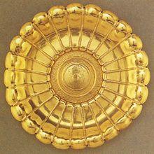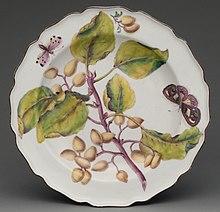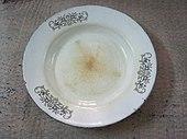 A plate is a broad, concave, but mainly flat vessel on which food can be served.[1] A plate can also be used for ceremonial or decorative purposes. Most plates are circular, but they may be any shape, or made of any water-resistant material. Generally plates are raised round the edges, either by a curving up, or a wider lip or raised portion. Vessels with no lip, especially if they have a more rounded profile, are likely to be considered as bowls or dishes, as are very large vessels with a plate shape. Plates are dishware, and tableware. Plates in wood, pottery and metal go back into antiquity in many cultures.