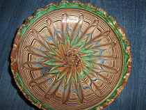 - Ribbon plate: decorative plate with slots around the circumference to enable a ribbon to be threaded through for hanging.