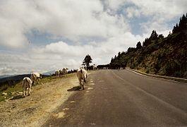 It is a formidable ascent. The first 12 kilometres (7.5 mi) are generally done under forest canopy and the last 4 kilometres (2.5 mi) are uncovered through the pastures, where cattle sometimes cross the road.[8]