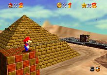 In 1994, a small developer called Exact released a game for the X68000 computer called Geograph Seal. The game was a fully 3D polygonal first-person shooter hybrid with a pronounced platform jumping component. Players piloted a frog-like mech that could jump and then double-jump or triple-jump high into the air, as the camera panned down to help players line up their landings. In addition to shooting, jumping on enemies was a primary means of attack.[61] This was the first true 3D platform-action game with free-roaming environments, but it was never ported to another platform nor released outside Japan, so it remains relatively unknown in the West.[62]