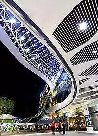 The mall has also been given a new facade with a 170-metre long wave frontage and features multi-coloured sculptures called the Jelly Baby Family by Italian artist Mauro Peruchetti. The renovation and construction of a new wing has increased the retail floor area of the mall from 497,575 square feet (46,226.2 m2) to 629,000 square feet (58,400 m2), which added 80 new retail and F&B shops to the directory of the mall.[3]