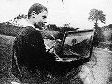 It was during the mid-19th century that the 'box easel', typically known as the 'French box easel' or 'field easel', was invented. It is uncertain who developed it, but these highly portable easels with telescopic legs and built-in paint box and palette made it easier to go into the forest and up the hillsides.[12] Still made today, they remain a popular choice (even for home use) since they fold up to the size of a brief case and thus are easy to store.[13]