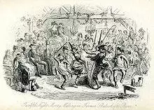 The Twelfth Night gathering in Harrison Ainsworth's Mervyn Clitheroe (1858), illustrated by Phiz, depicting the northern Fool Plough dance.