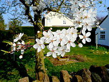 Plums are a diverse group of species. The commercially important plum trees are medium-sized, usually pruned to 5–6 metres (16–20 ft) height. The tree is of medium hardiness.[8] Without pruning, the trees can reach 12 metres in height and spread across 10 metres. They blossom in different months in different parts of the world; for example, in about January in Taiwan and early April in the United Kingdom.[9]