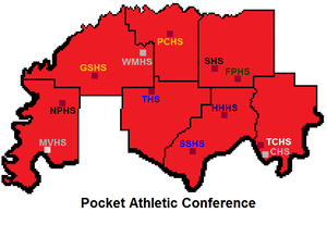 The Pocket Athletic Conference (PAC) is a high school athletic conference in Southwestern Indiana with its headquarters at Forest Park. Most of the conference's 13 members are mainly Class 2A and 3A public high schools currently located in Daviess, Dubois, Gibson, Perry, Pike, Posey, Spencer, and Warrick counties. Only one, Tecumseh, is a 1A and as such operates its football program independently of the PAC and remains independent in the sport, playing schools much closer to its size than its much larger borderline 3A or 3A and 4A fellow members.