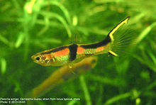 Poecilia wingei, known to aquarists as Endlers or Endler's livebearer, in the genus Poecilia, is a small fish native to the Paria Peninsula in Venezuela.[2] They are prolific breeders and often hybridize with guppies. These very colorful hybrids are the easiest to find being offered in pet-shops, typically under the name Endler's guppy.