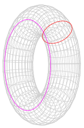 ![]() A compact 2-dimensional surface without boundary is topologically homeomorphic to a 2-sphere if every loop can be continuously tightened to a point. The Poincaré conjecture asserts that the same is true for 3-dimensional spaces. | |