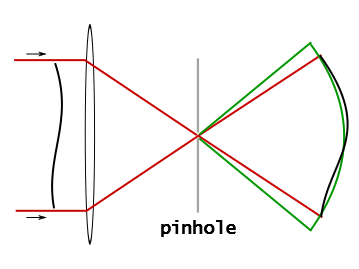 The device is similar to a spatial filter. Incident light is focused onto a semi-transparent mask (about 0.1% transmission). In the centre of the mask is a hole about the size of the Airy disc, and the beam is focused onto this hole with a Fourier-transforming lens. The zeroth order (the low frequencies in Fourier space) then passes through the hole and interferes with the rest of beam. The transmission and the hole size are selected to balance the intensities of the test and reference beams. The device is similar in operation to phase-contrast microscopy.