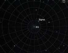 σ Octantis, sometimes known as the South Star, can be sighted in the Southern hemisphere to perform polar alignment. At magnitude +5.6, it is difficult for inexperienced observers to locate in the sky. Its declination of -88° 57′ 23″ places it 1° 2′ 37" from the South Celestial Pole. An even closer star BQ Octantis of magnitude +6.9 lies 10' from the South Pole as of 2016. Although not visible to the naked eye, it is easily visible in most polar 'scopes. (It will lie its closest to the South Pole, namely 9', in the year 2027.