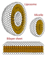 Cross section view of the structures that can be formed by phospholipids. They can form a micelle and are vital in forming cell membranes