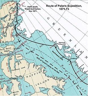In 1827, Sir Edward Parry led a British Royal Navy expedition with the aim to be the first men to reach the North Pole.[1] In the next five decades following Parry's attempt, the Americans would mount three such expeditions: Elisha Kent Kane in 1853–1855,[2] Isaac Israel Hayes in 1860–1861,[3] and Charles Francis Hall with the Polaris in 1871–1873.