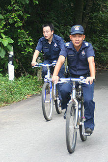 In May 2005, the island Patrol Uniform was introduced, consisting of a helmet, dark blue polo top and Bermudas for officers performing bicycle patrol duties on Pulau Ubin.[29] These were introduced to project a softer image on the island where recreational activities abound, and to provide greater comfort for the officers in the humid outdoor weather.