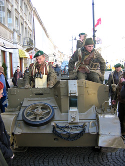 It is often said that the Polish Armed Forces in the West were not invited to the London Victory Parade of 1946.[1][16][17] At first the British Government invited representatives of the newly recognised regime in Warsaw to march in the Parade, but the delegation from Poland never arrived, the reason never being adequately explained; pressure from Moscow is the most likely explanation. Bowing to press and public pressure, the British eventually invited Polish veterans of the RAF that then represented the Polish Air Force under British Command, to attend in their place. They, in turn, refused to attend in protest at similar invitations not being extended to the Polish Army and Navy. The only Polish representative at the parade was Colonel Józef Kuropieska, the military attaché of the Communist regime in Warsaw, who attended as a diplomatic courtesy.[4]