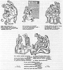 The development of Nazi propaganda in occupied Poland can be divided into two main phases. Initial efforts were directed towards creating a negative image of pre-war Poland,[18] and later efforts were aimed at fostering anti-Soviet, antisemitic, and pro-German attitudes.[18]