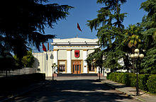 The Parliament of Albania (Kuvendi i Shqipërisë) is a unicameral legislative body. It is composed of not less than 140 members elected to a four-year term on the basis of direct, universal, periodic and equal suffrage by secret ballot. As of Article 45 of the Constitution, which guarantees the right to vote, the People of Albania exercise their power through their elected representatives in the Parliament. When the Parliament is elected, the first session shall be held no later than 20 days after the completion of elections with the President as the speaker.[11] There are 15 permanent committees. Extraordinary meets can be called by the President, by the Chairperson of the Parliament, by the Prime Minister or by the one fifth of the members. Decisions are made based on a majority vote if more than half of the members are present, except in cases where the Constitution provides for a special majority. As specified by the current electoral legislation in Albania, 140 members of the Parliament are elected in multi-seat constituencies. Within any constituency, parties must meet a threshold of 3 percent of votes, and pre-election coalitions must meet a threshold of 5 percent of votes.[12][13] All laws passed by the Parliament are published through the Fletorja Zyrtare, the official journal of the government.[14]