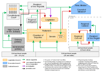 - ^ Trentino-Alto Adige/Südtirol is composed of two autonomous provinces, which are individually represented in the Conference of Regions and Autonomous Provinces.