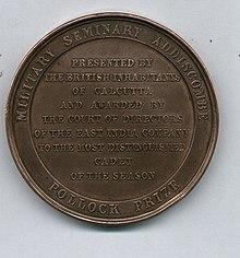 The Pollock Medal is a prize awarded to the best cadet of the season, in commemoration of Sir George Pollock's exploits in Afghanistan, first at the East India Company's Military Seminary at Addiscombe, and later at the Royal Military Academy, Woolwich.[1]