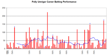 - ^ Umrigar's 560 runs in the 1952–53 series equalled Rusi Modi's identical tally against West Indies at home in 1948–49. This stood as an Indian record till Vijay Manjrekar scored 586 runs against England in 1961–62, and the highest abroad till Dilip Sardesai and Sunil Gavaskar made 642 and 774 runs in West Indies in 1970–71.