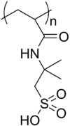 PolyAMPS, or poly(2-acrylamido-2-methyl-1-propanesulfonic acid) (trademark of the Lubrizol Corporation), is an organic polymer. It is water-soluble, forms gels when cross linked, and acts as a strong anionic polyelectrolyte. It can be used for ion exchange resins. It can form hydrogels.