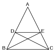 - Let ABC be an isosceles triangle with AB and AC being the equal sides. Pick an arbitrary point D on side AB and construct E on AC so that AD = AE. Draw the lines BE, DC and DE.
