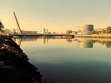 An island on the Lérez opposite a remarkable cable-stayed bridge dating from 1995 (the Pont of Tirantes, the Strap Bridge) and next to the modern Congress Hall shelters the city's green lung, the famous sculpture island park.[27] It is a space where international artists such as Robert Morris, Ulrich Rückriem, Anne and Patrick Poirier, Giovanni Anselmo, Richard Long, Ian Hamilton Finlay or Jenny Holzer have left their works.