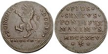 The word "pontifex" later became a term used for Christian bishops,[4] including the Bishop of Rome,[5] and the title of "Pontifex Maximus" was applied within the Roman Catholic Church to the Pope as its chief bishop. It is not included in the Pope's official titles,[6] but appears on buildings, monuments and coins of popes of Renaissance and modern times.