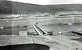 At Prairie du Chien, Wisconsin, the Pile-Pontoon Railroad Bridge was constructed in 1874 over the Mississippi River to carry a railroad track connecting that city with Marquette, Iowa. Because the river level could vary by as much as 22 feet, the track was laid on an adjustable platform above the pontoons.[35] This unique structure remained in use until the railroad was abandoned in 1961, when it was removed.