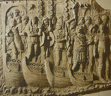 During the Middle Ages, pontoons were used alongside regular boats to span rivers during campaigns, or to link communities which lacked resources to build permanent bridges.[22] The Hun army of Attila built a bridge across the Nišava during the siege of Naissus in 442 to bring heavy siege towers within range of the city.[23] Sassanid forces crossed the Euphrates on a quickly-built pontoon bridge during the siege of Kallinikos in 542. The Ostrogothic Kingdom constructed a fortified bridge across the Tiber during the Siege of Rome in 545 to block Byzantine general Belisarius' relief flotillas to the city.[23] The Avar Khaganate forced Syriac-Roman engineers to construct two pontoon bridges across the Sava during the Siege of Sirmium in 580 to completely surround the city with their troops and siege works.[23]