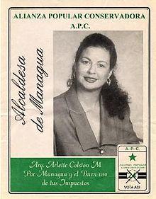 The Popular Conservative Alliance (Spanish: Alianza Popular Conservadora - APC) is a right-wing conservative Nicaraguan political party. The APC split from the Democratic Conservative Party (PCD) in 1984 when Miriam Argüello led a group opposed to the PCD's position on whether to participate in elections.