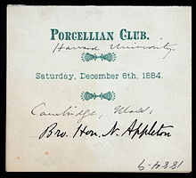 - ^ a b "Wee, Wee, Wee - The Time-Honored Dinner of the Porcellian Club". The Cambridge Chronicle. February 28, 1891. p. 6.