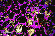 Used in geology, hydrogeology, soil science, and building science, the porosity of a porous medium (such as rock or sediment) describes the fraction of void space in the material, where the void may contain, for example, air or water. It is defined by the ratio: