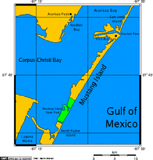 Karankawa Indians played a key role in the early development of the Texas Gulf Coast.[6] The Karankawa Indians inhabited the Gulf Coast of Texas from Galveston Bay all the way to Corpus Christi Bay. The Karankawa Indians led a nomadic existence, migrating from the mainland to the coast. One of the places they lived in on the coast was a small fishing village known as "Sand Point" on what Europeans called "Wild Horse Island", later known as "Mustang Island".