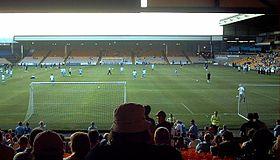 Vale Park has been Port Vale's home ground since 1950; it is located on Hamil Road, opposite Burslem Park. Originally planned to be as massive as an 80,000 capacity stadium, the development was known as the "Wembley of the North".[69] However the £50,000 project opened at a capacity of 40,000 (360 seated) – still highly ambitious.[67] The capacity was increased to a sell-out 49,768 for an FA Cup tie with Aston Villa in 1960.[67] The stadium underwent numerous upgrades after Bill Bell was elected as chairman in 1987, who aimed to make it "fit for the Premiership", though the job was never entirely completed and the Lorne Street stand remained half-finished.[70] Outside the ground is a statue to Roy Sproson, who played 842 competitive games for the club.[71]