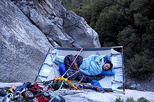 Warren Harding slept on natural ledges during his first ascent of El Capitan in Yosemite in 1958.[1]