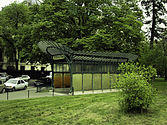 The station contains one of the three remaining "dragonfly" roofed Métro entrances by Hector Guimard (1867–1942), the Art Nouveau architect who was originally commissioned by the Compagnie du Métropolitain de Paris (CMP) in 1899 to design the entrances for the Métro stations. It is the only roofed entrance that is original, not reconstructed, and on its original site. It was restored in 1999.[6]:43