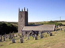 The 12th and 15th-century church of St Levan is between St Levan proper and Porthcurno, towards the end of the cul-de-sac main village road. It has medieval foundations and is adjoined by a graveyard which has two of the parish's six stone crosses and a small car park. It sits close to the coast path, lightly wooded slopes and adjoins pasture meadows. The largely unadulterated exterior has featured in the BBC drama Doctor Who.