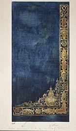 A portière is a hanging curtain placed over a door or over the doorless entrance to a room. Its name is derived from the French word for door, porte. From Asia, it came to Europe at a remote date. It is known to have been in use in Europe in the 4th century, and was probably introduced much earlier.[1] Like so many other domestic plenishings, it reached England by way of France, where it appears to have been originally called rideau de Porte (literally, "door curtain").