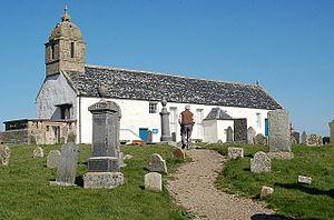 Recent research on the ancient trench around the local monastery found organic samples in the date range from 140 AD to 590 AD. The area enclosed by the ditch may have been a "settlement, craft-working centre and/or hub of a Pictish community", connected to the possible Roman fortification in Port a Chaistell.[4]