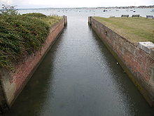 This section of the canal ran from Eastney lake in Langstone Harbour across Portsea Island to a basin close to what is now the Arundel street shopping precinct.[5] This section of the canal was built to what were then small ship canal standards and could take ships of up to 150 tons.[6] there were 2 locks at Milton (a sea lock and an upper lock)