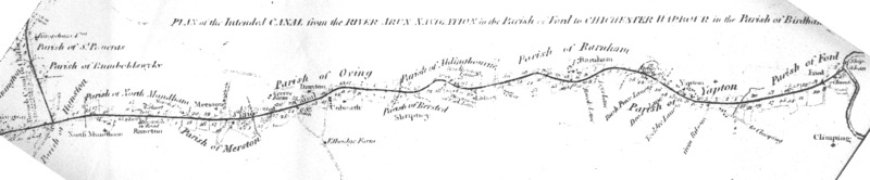 The Chichester ship (or Barge) canal ran from the sea lock at Birdham to the junction of the Portsmouth and Arundel Canal at Hunston and then North to a basin in the south of the city of Chichester.[4]